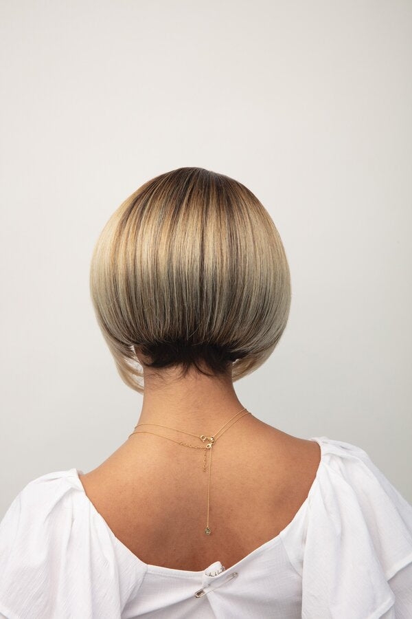 Fabulous is a short-length high heat wig from The Orchid Collection. It has straight ready-to-wear hair with a chin-length bob. The cap construction is a U-Part with lace front for a more natural look. Fabulous features a flower net top with elastic bands that allow more flexibility in the cap.