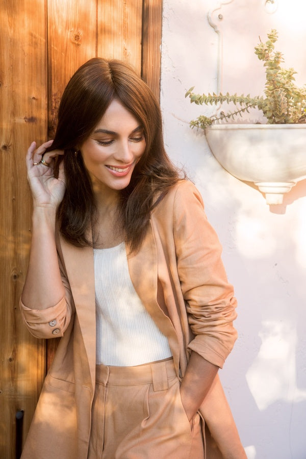 Flex Top Piece is a synthetic top piece from the Amore Collection. With its straight hair enhancing features, it is a simple way to add coverage and density to your mid-length hair. The cap construction is a Monofilament Wigs base with a soft wire perimeter to create a perfect fit. The Flex TP can be worn as a highlighter or filler and has coverage from the top of the head from fringe to crown.