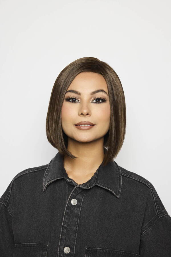 Kai is a short-length synthetic wig from the Hi-Fashion Collection. It has straight ready-to-wear hair sharply cut into a sleek bob giving you the perfect sophisticated look. The cap construction is lace front with a lace part and adjustable tabs in the back nape area allowing you to create a comfortable fit.