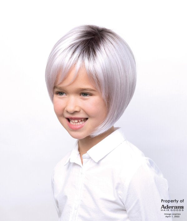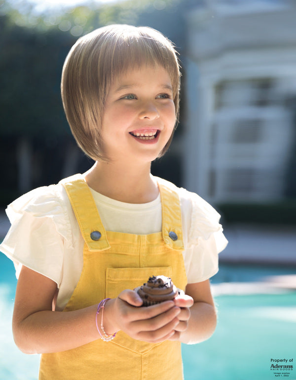 Kensley is a short-length synthetic bob from the Amore Children's Wig Collection. It is a classic A-line bob with side swept fringe and face framing layers for versatility. The children's wigs are light weight, wefted and lined with an invisible hairline for ultimate comfort. The cap construction includes lace front with lace part and full Monofilament Wigs top. The cap is covered with soft material and elastic lace for stretch and flexibility.