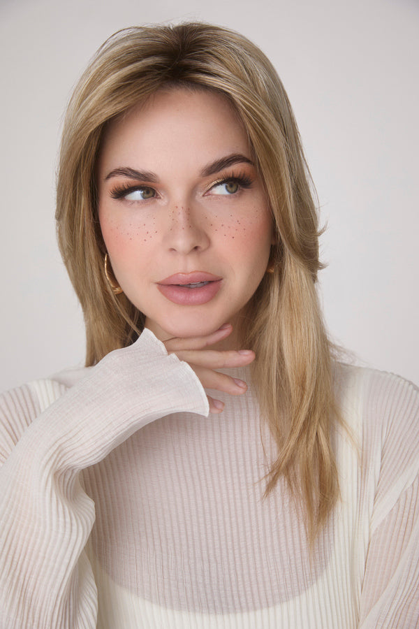Medium Modern Top Piece from our Amore Collection is a mid-length, synthetic hair topper. It can we worn as a filler or for extra volume. This Modern TP is an enhancer that adds dimension and density to your everyday look. The Modern TP comes in a Monofilament Wigs cap construction that gives you a light, breathable base constructions and provides the ultimate versatility and comfort.