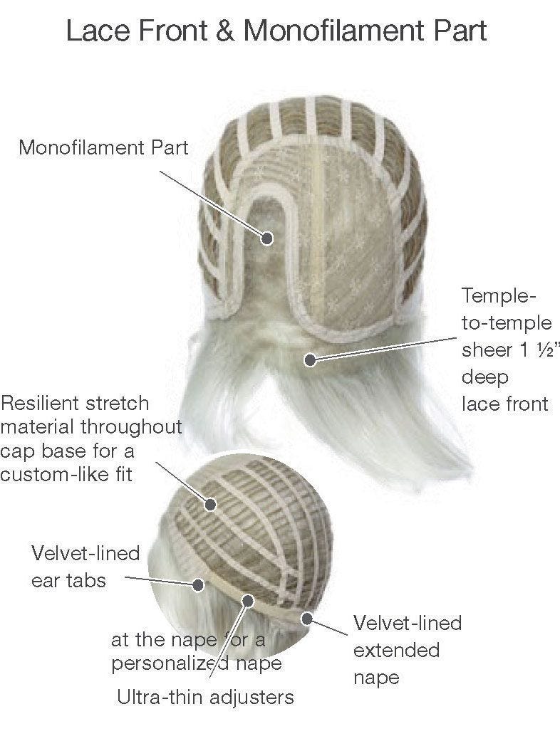 The Modern Motif by Gabor is a classic bob modernized with textured waves. An eyelash bang graces the front to add an air of flirtation, while softly layered lengths throughout offer fullness and movement. The temple-to-temple sheer lace front with a monofilament part allows for off-the-face styling and guarantees a light, comfortable fit and natural look.