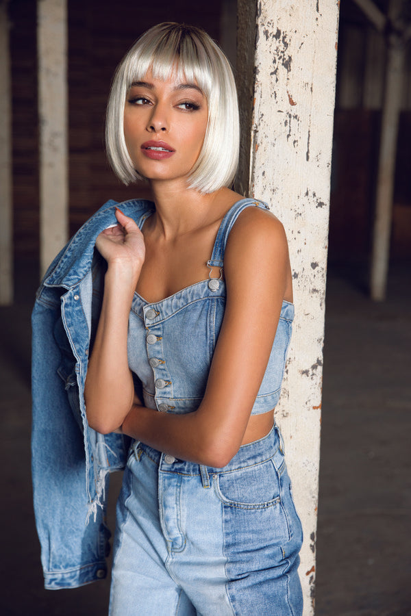Nico from our Rene of Paris Hi-Fashion Collection is a short-length synthetic wig. This straight ready-to-wear is a short chin-length bob with full fringe. It’s a sleek and effortless style for all face shapes. Nico is machine made with adjustable tabs in the back nape area to allow a more comfortable fit. The result is a comfortable fit with a natural look that is both fashionable and easy to wear.