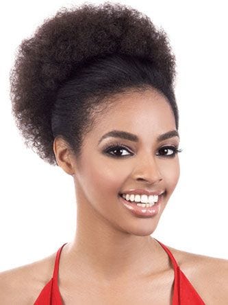 The Afro 5 by Motown Tress is a big afro kinky ponydo wiglet. It's made of curlable fibers that give you an edgy ponydo look.