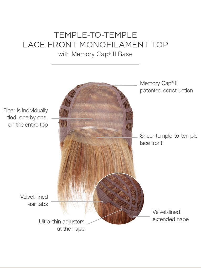The Real Deal Monofilament Wig by Raquel Welch is an easy to wear looks with tons of flair. It has a sheer lace front and a monofilament top for a natural looking appearance. Shattered ends and razor-cut lengths give this modern bob both popular and practical appeal. The close fitting nape and flattering eyelash bang work together to create a confident look that's also very feminine. Heat style the ends turned under or with a sassy upwards flick.