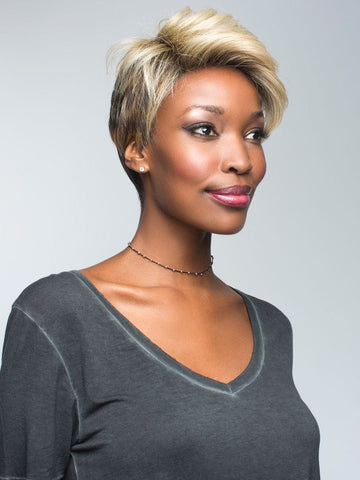 The Rebel Lace Front Wig by Revlon Bold screams new-age chic, with an angled cut and sleek back and sides. The bold long fringe can be spiked for a cool grunge look or styled for more sophistication. The Rebel features a new lace front for off-the-face styling and heat friendly fibers to use your favorite hot tools on! Let your inner rebel out!