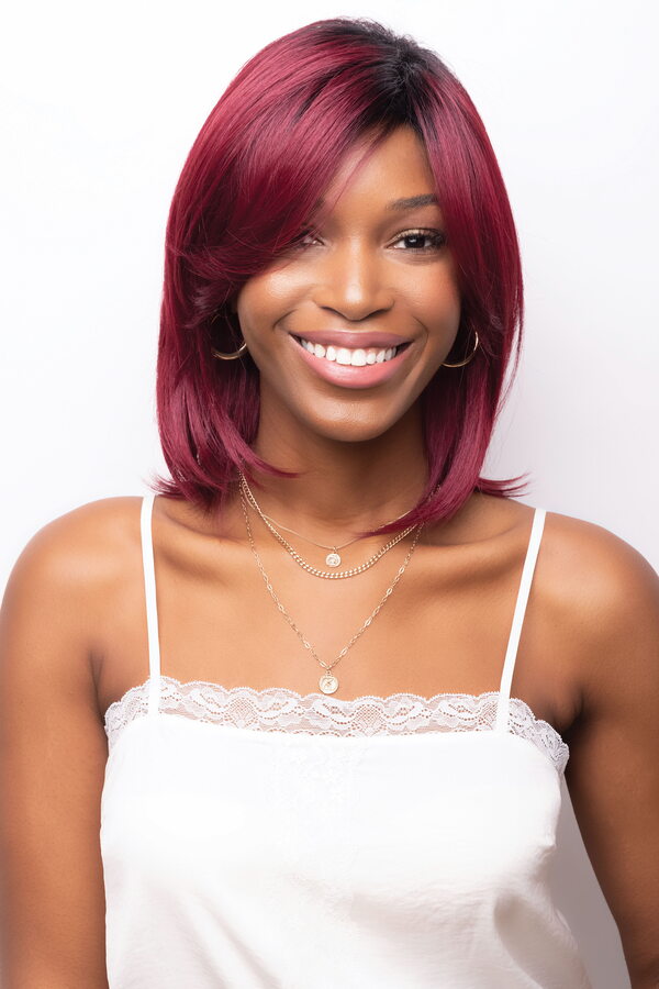 This simple yet sophisticated mid length bob has soft layers that give it movement to enable you to wear it in multiple ways. It can be worn casual or dressed up.