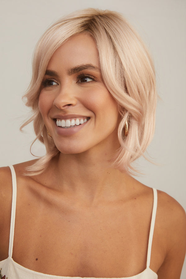 Sheena from our Orchid Collection is a short-length synthetic wig. This straight ready-to-wear style is a refined side-parted bob with a sleek, blown-out finish. The voluminous texture provides lush movement and vibrant bounce, bringing energy to its polished silhouette. Sheena’s elegant shape flatters a variety of face shapes while offering a contemporary twist on a classic look. It features a lace front and lace part cap construction for a natural appearance and styling versatility. Adjustable tabs in the back-nape area allow for a secure and comfortable fit. Crafted with high-quality synthetic fibers, Sheena delivers both modern sophistication and everyday wearability.