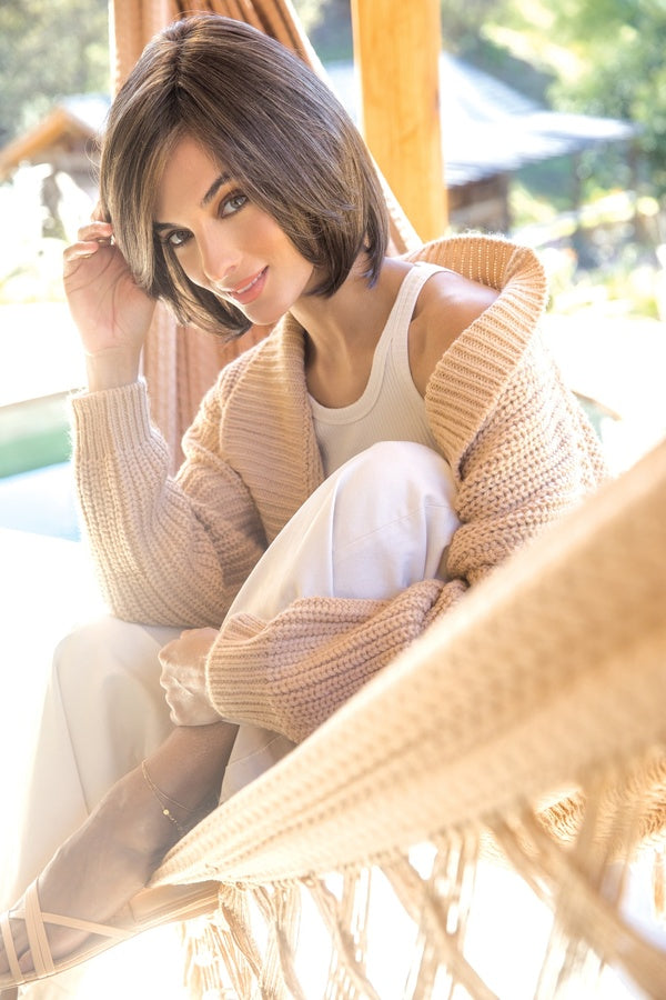 Sybil from our Amore Collection is a short length synthetic wig. This straight ready-to-wear wig is a sophisticated long layered bob. If you are wanting a long side fringe with enhancing layers that shape and highlight your cheekbones, Sybil is the style for you. Discover comfort and beauty in the newest Advanced Lace Cap. Sybil’s cap features hand tied plus double monofilament cap construction along with an extended lace front. Its hand-tied wig is constructed by carefully stitching each hair fiber strand by strand. This meticulous design produces a lighter, more comfortable wig. The lace front is a hairline fusion technology with minimal lace front for a natural look. You will feel cool and comfortable with superior air circulation provided by this technologically advanced cap design.