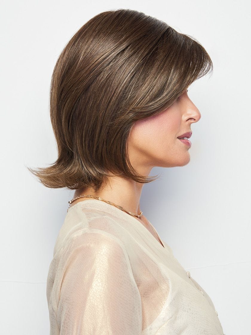 The Raquel Welch Upstage lace front synthetic wig is a 100 percent hand-knotted mid-length hairpiece that reaches the pinnacle of style and elegance. It creates a natural-looking hairline so nobody will know that you’re wearing a wig. It is part of the Sheer Indulgence collection. This wig will feature a lace-front, giving you a realistic hairline appearance and a monofilament top to allow you to change the parting in any direction. Made with authentic Tru2Life synthetic hair, it can be treated with styling tools such as curling irons, flat irons and blow dryers, but never go above a low/ medium setting. You can even wet-set this wig or use steam rollers to create a look that’s all your own.