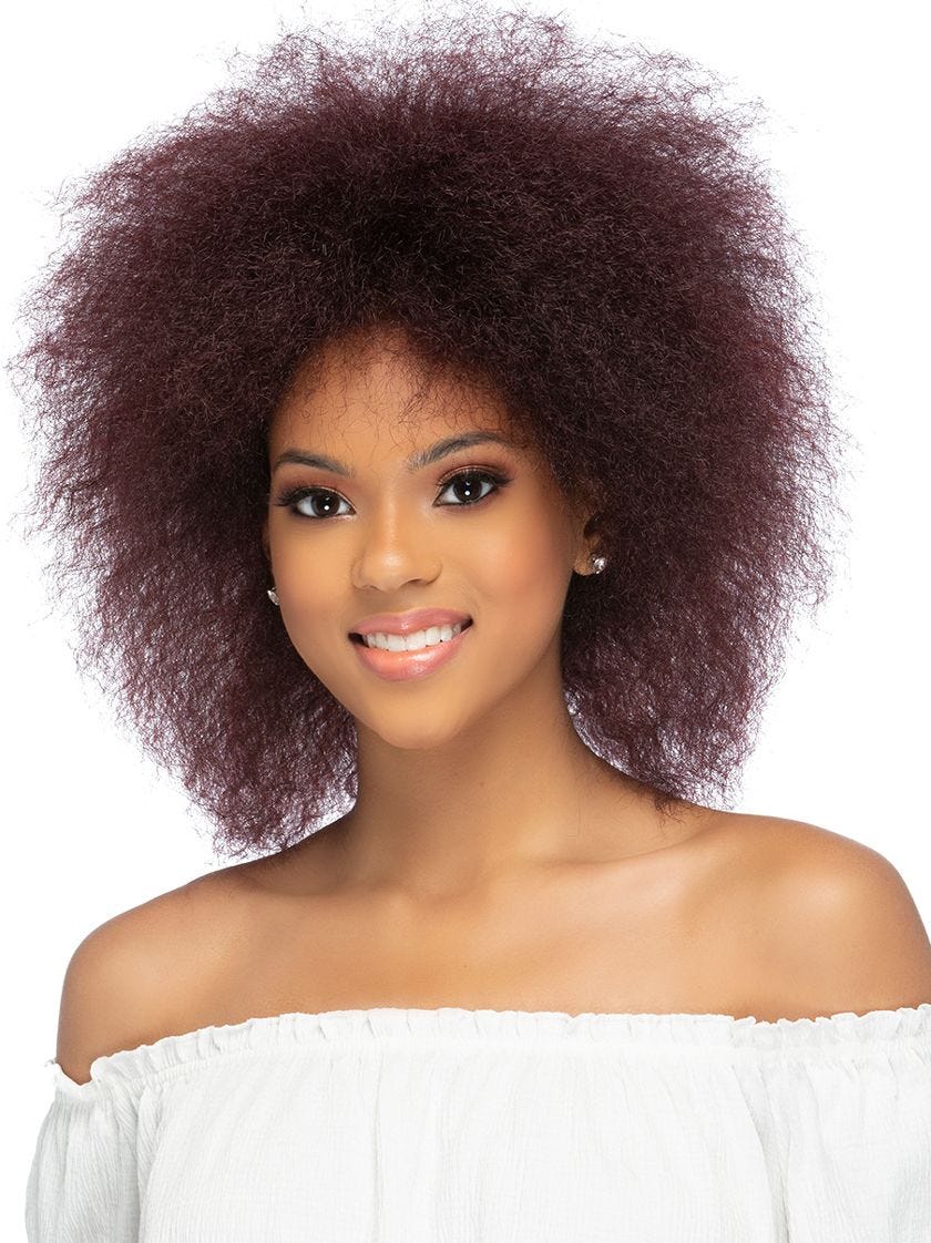 Wynter by Vivica Fox is a large synthetic afro wig. With a stylish blowout style that is perfect for grabbing, and going.